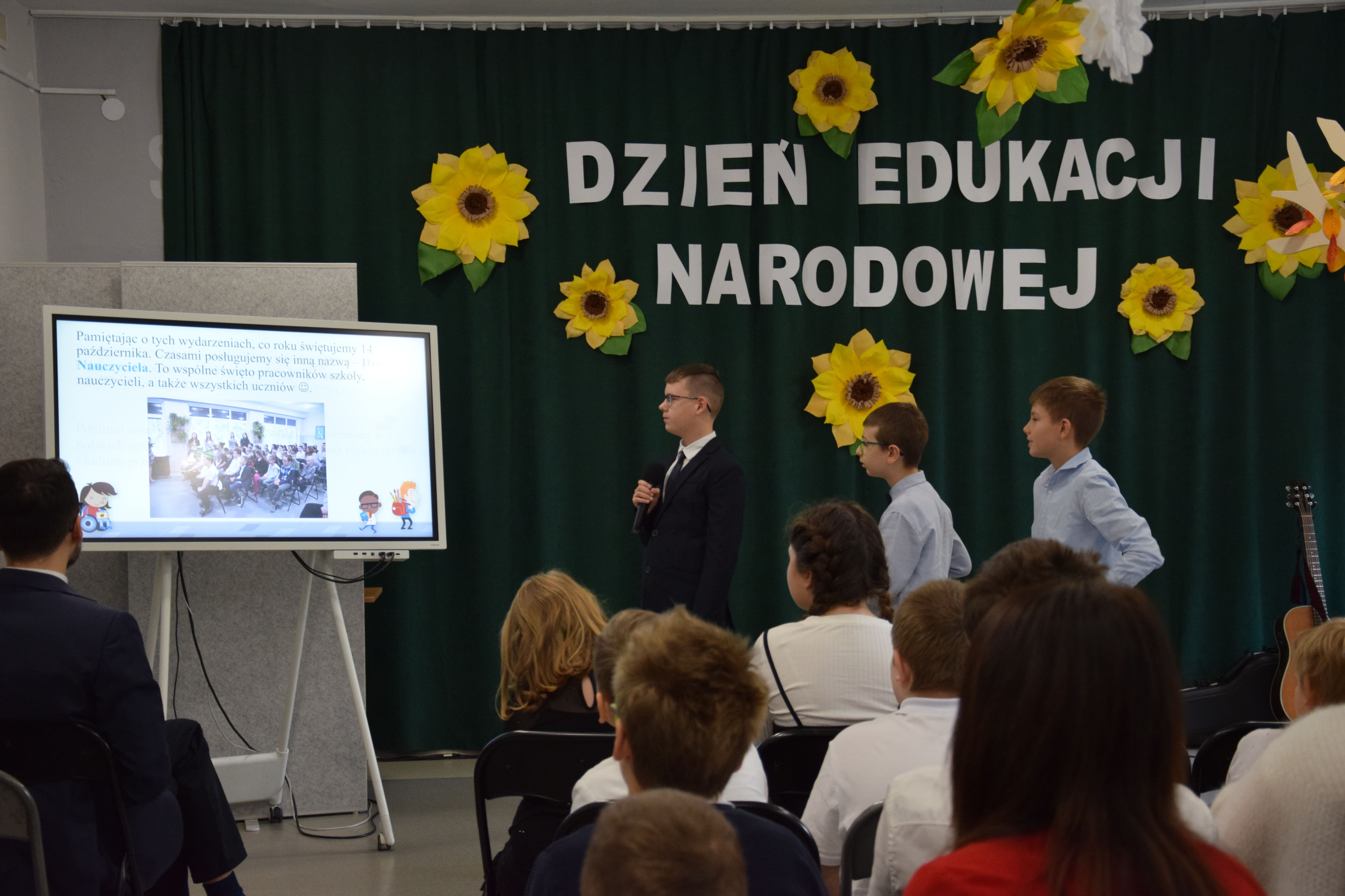 Uczniowie klas 3, 5 i 6 przygotowali niezwykły występ dla swoich nauczycieli – było muzycznie, tanecznie, a nawet historycznie! Wśród atrakcji znalazł się także piękny wiersz i zabawa “Rozpoznaj nauczyciela na zdjęciu z dawnych lat”, która wzbudziła mnóstwo emocji i śmiechu!
