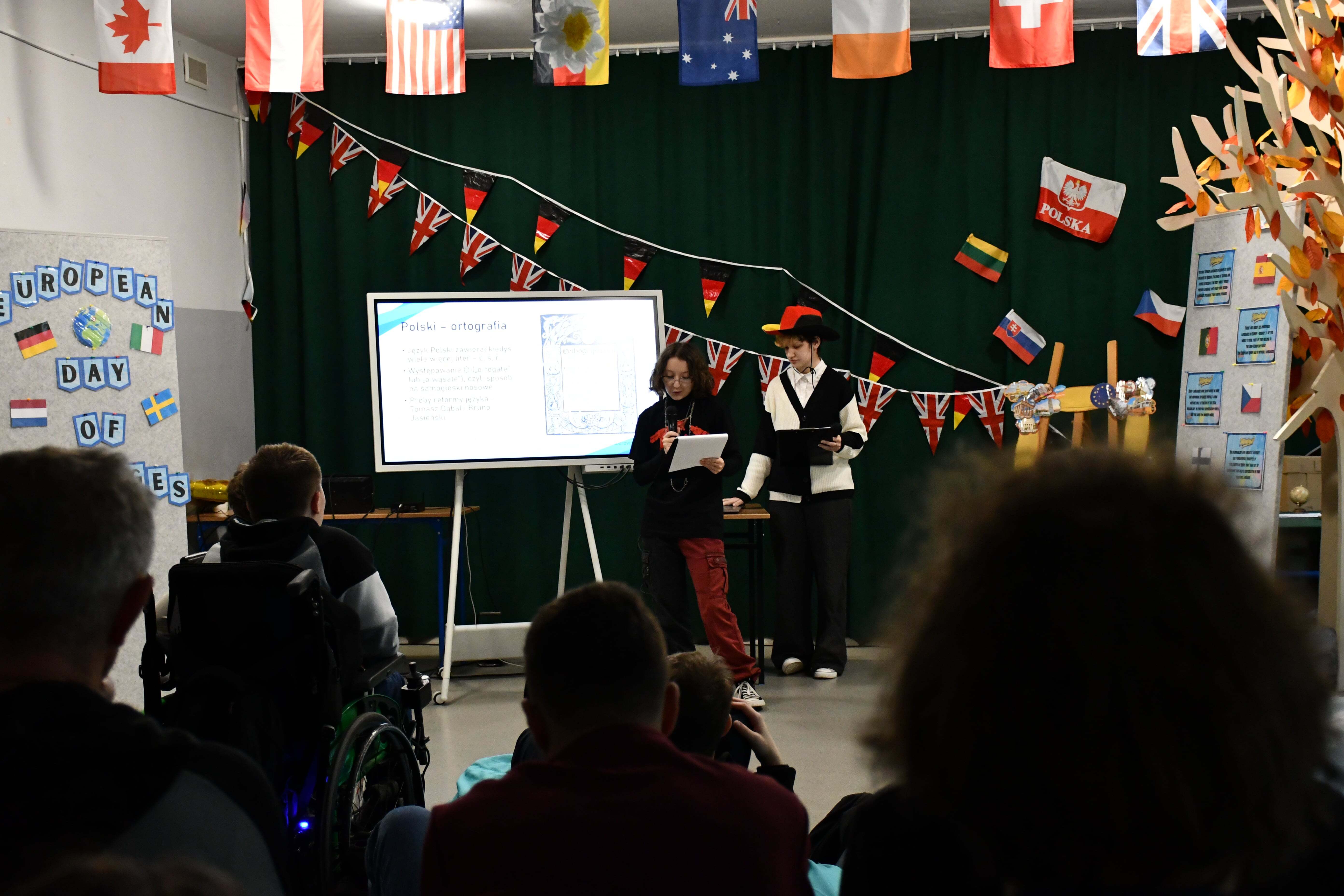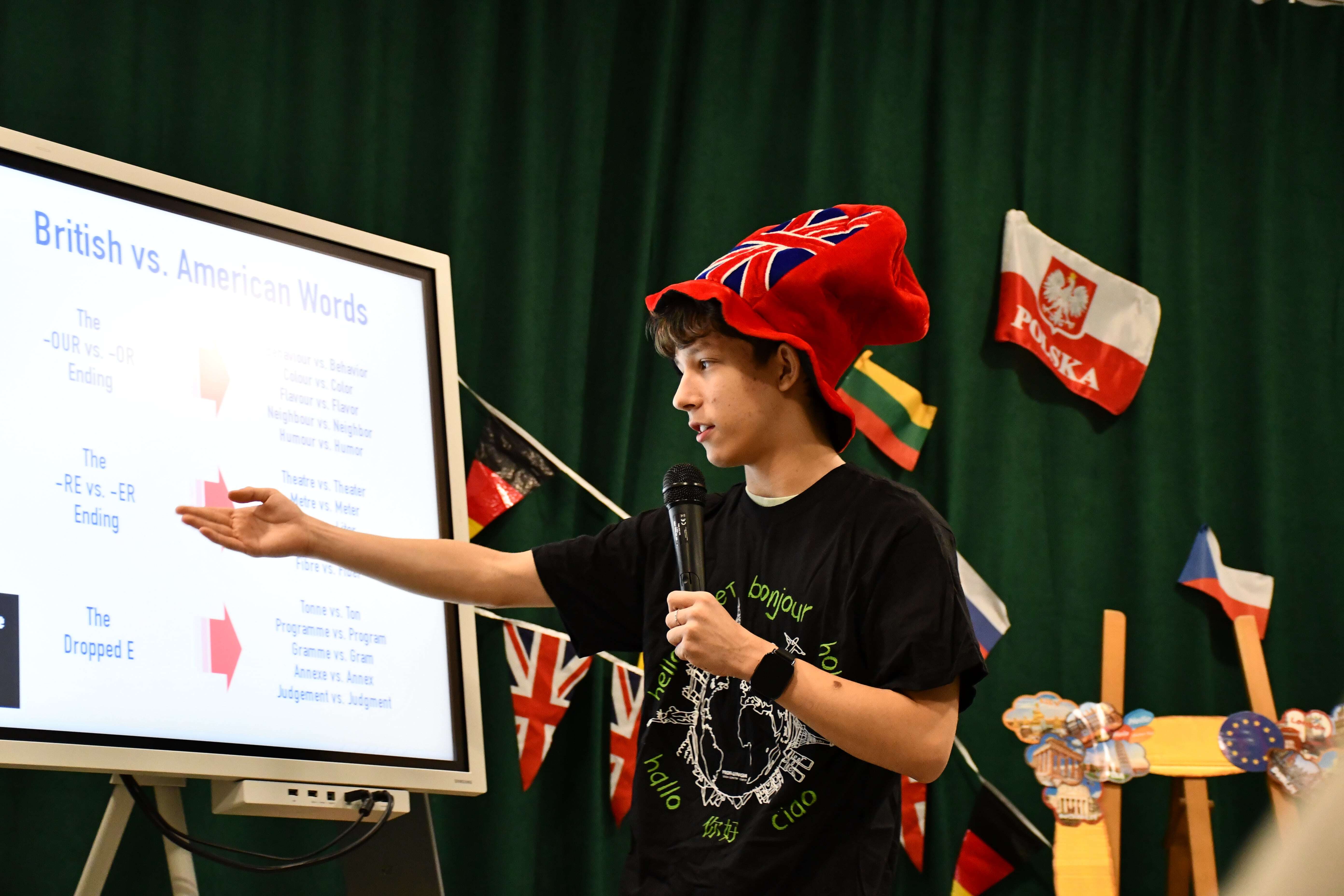 W miniony piątek w ramach obchodów Europejskiego Dnia Języków Obcych uczniowie liceum wysłuchali prezentacji koleżanek z klasy III i IV na temat ciekawostek dotyczących różnych języków oraz poznali różnice pomiędzy brytyjskim angielskim, a amerykańskim angielskim, dzięki prezentacji przygotowanej przez kolegów z klasy I LO.
