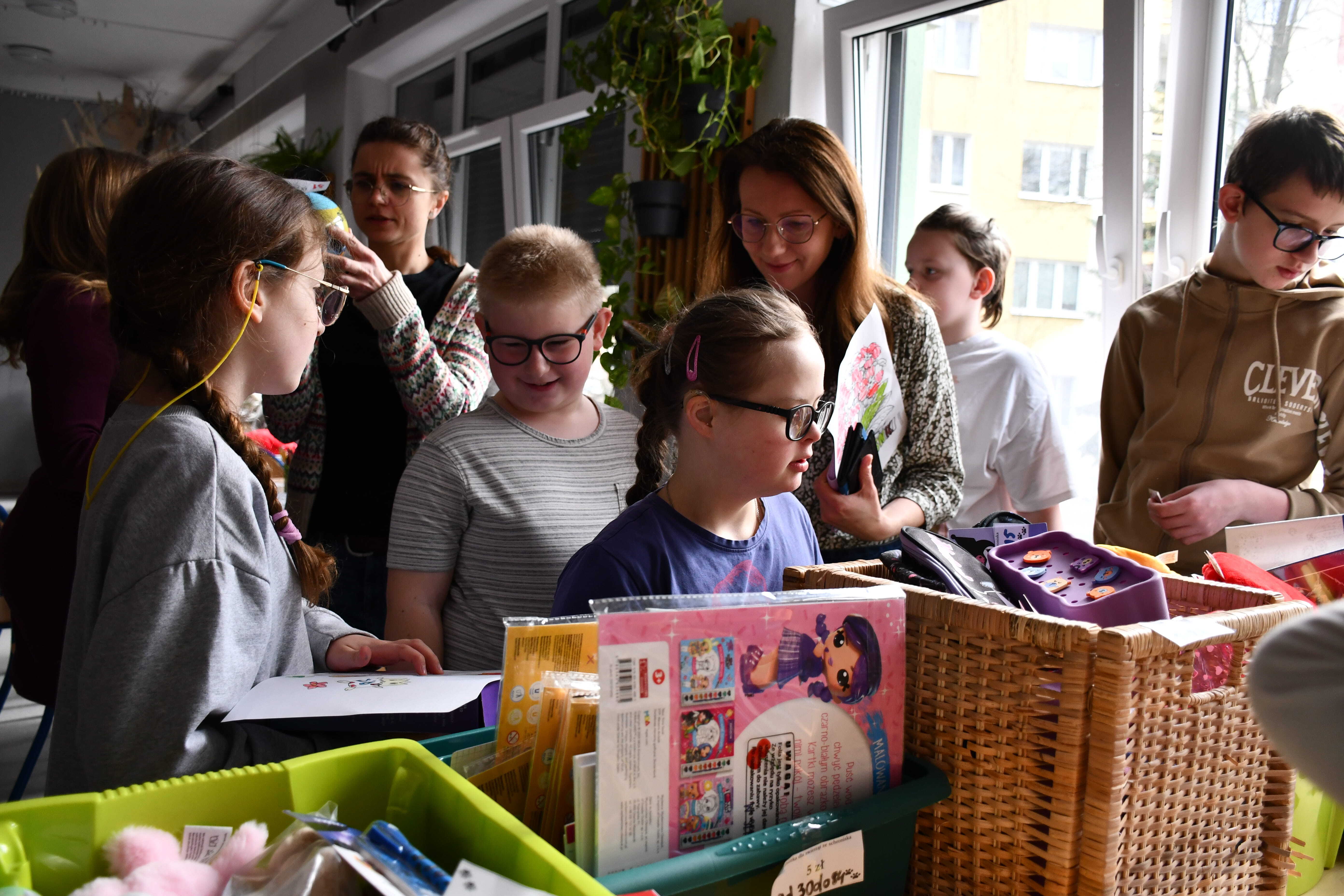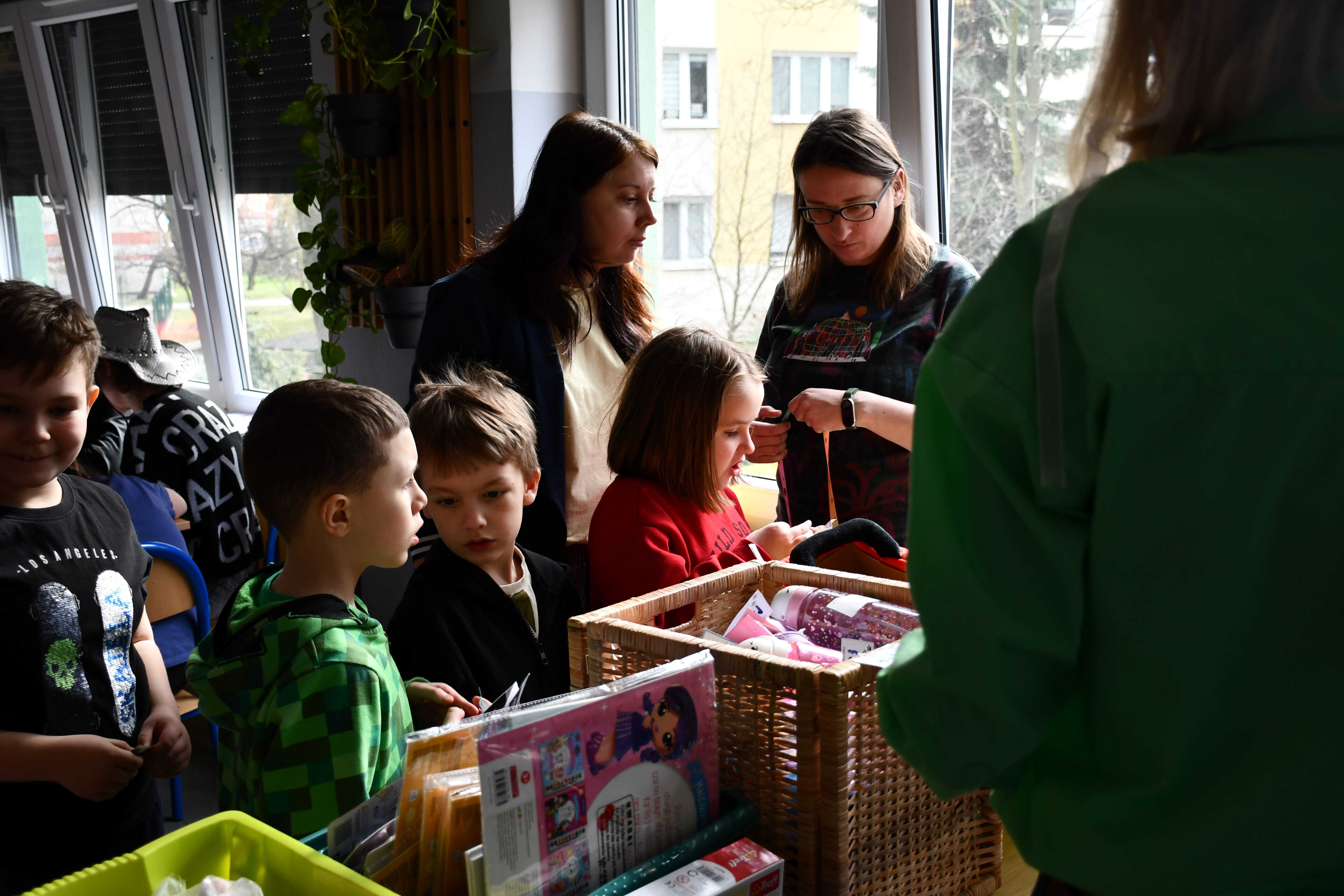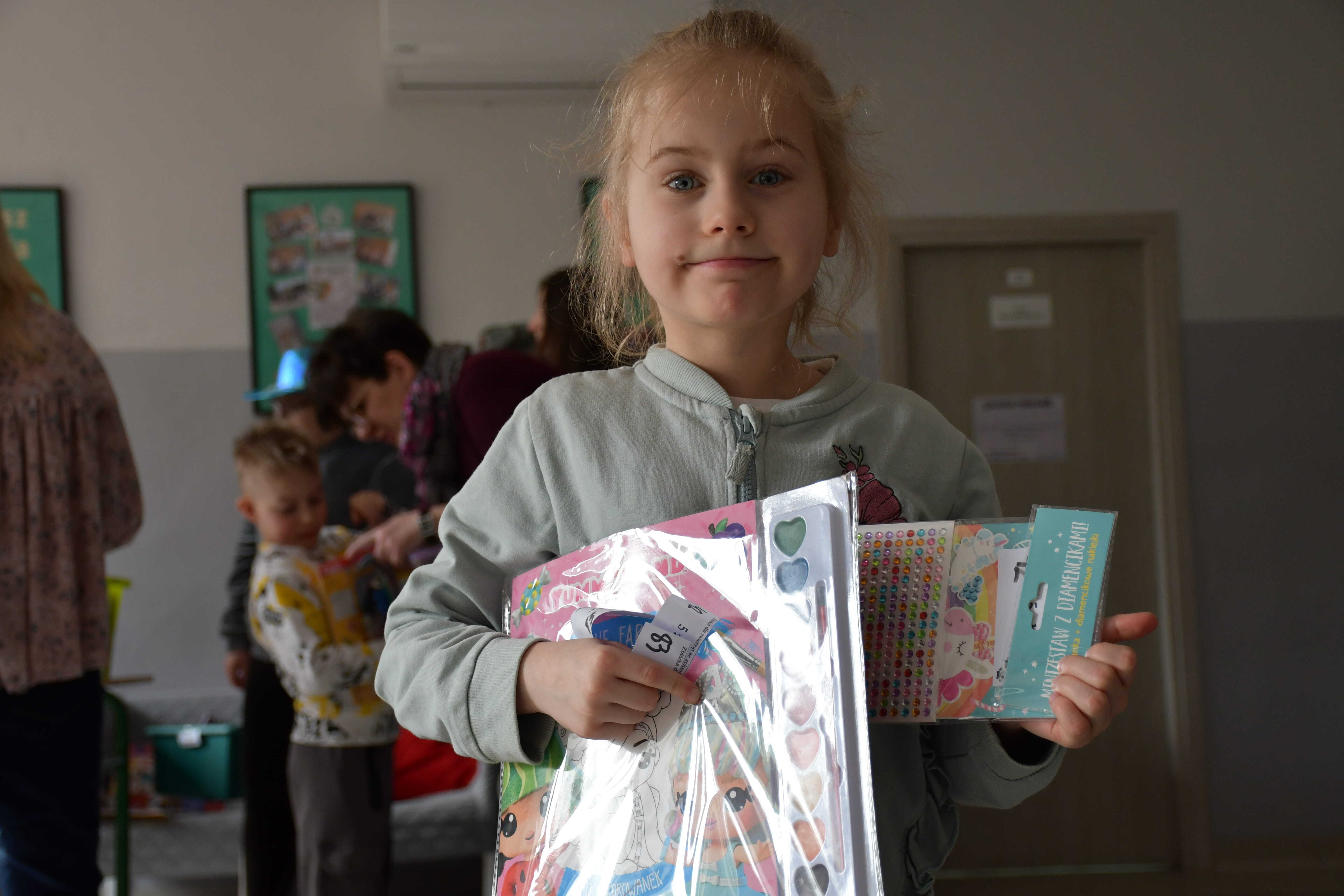 24 marca Wolontariusze przygotowali gry, zabawy oraz kącik rysunkowy dla swoich młodszych kolegów z klas 1-3 szkoły podstawowej. Każdym stanowiskiem opiekowały się dwie lub trzy osoby z wolontariatu, które objaśniały na czym polega zadanie oraz motywowały do jego wykonania. W czasie zabawy nawiązało się wiele ciekawych rozmów oraz zabawnych sytuacji. Po zmierzeniu się z konkurencjami uczniowie i nauczyciele mogli kupić los w cenie 5/10/15 zł. Każdy los był niespodzianką i zaskoczeniem, a wśród nagród znalazły się zabawki, przybory piśmiennicze, maskotki, bidony, breloczki, puzzle i książki.