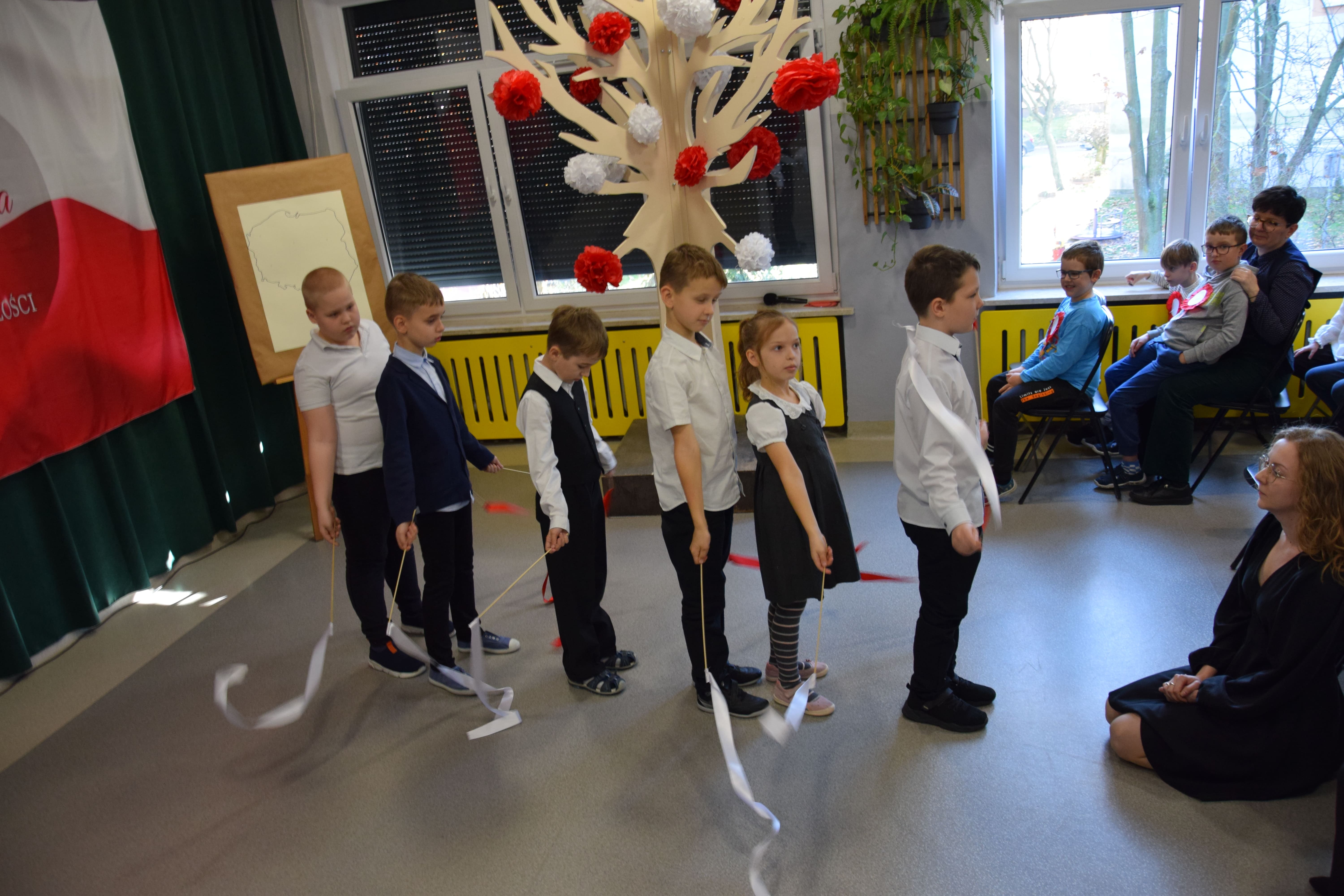 Uczniowie klasy 2a przygotowali montaż taneczno-muzyczny poświęcony naszej ojczyźnie. Całość dopełnił film, w którym uczniowie z klas 1-5 w artystyczny sposób upamiętnili 11 listopada.