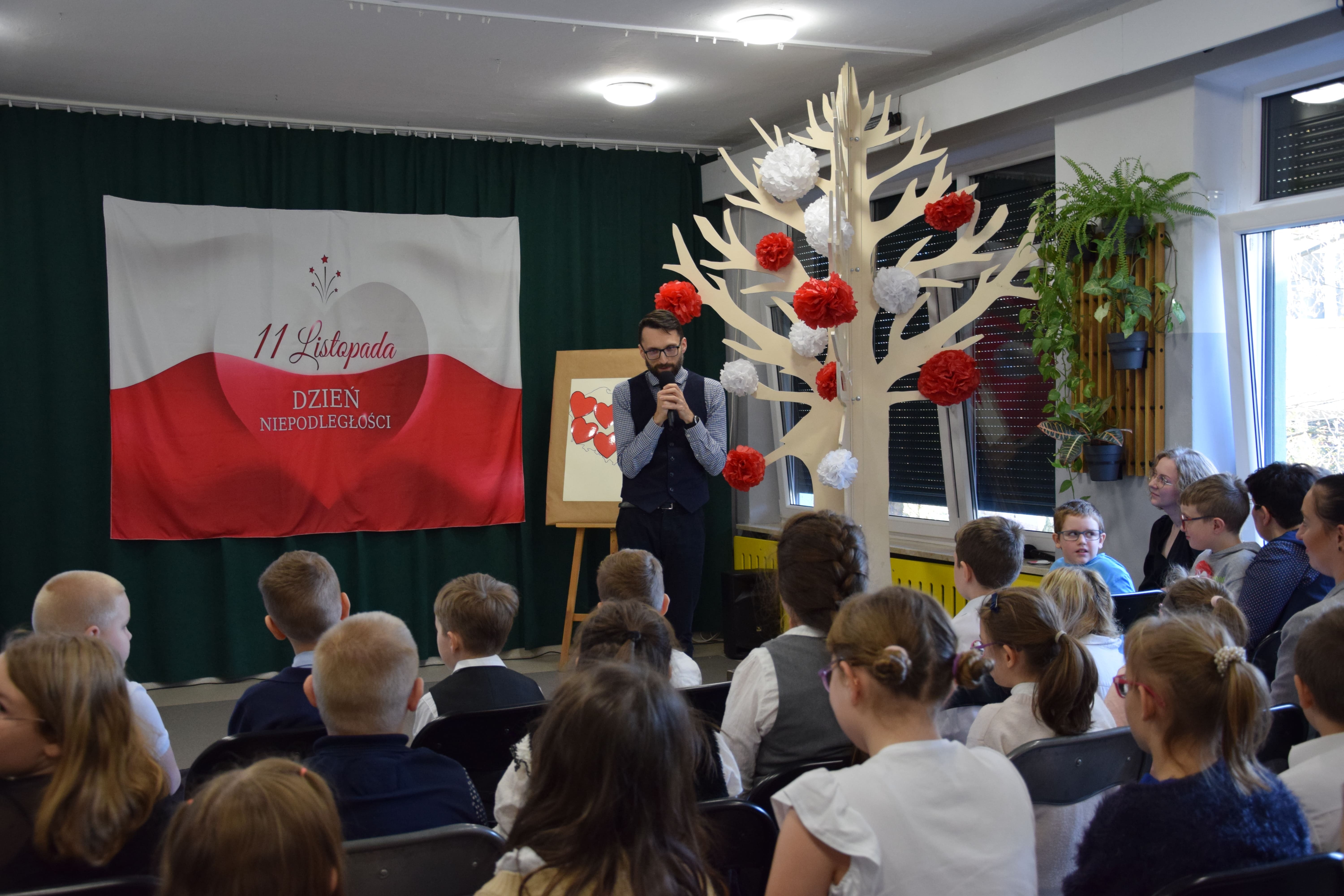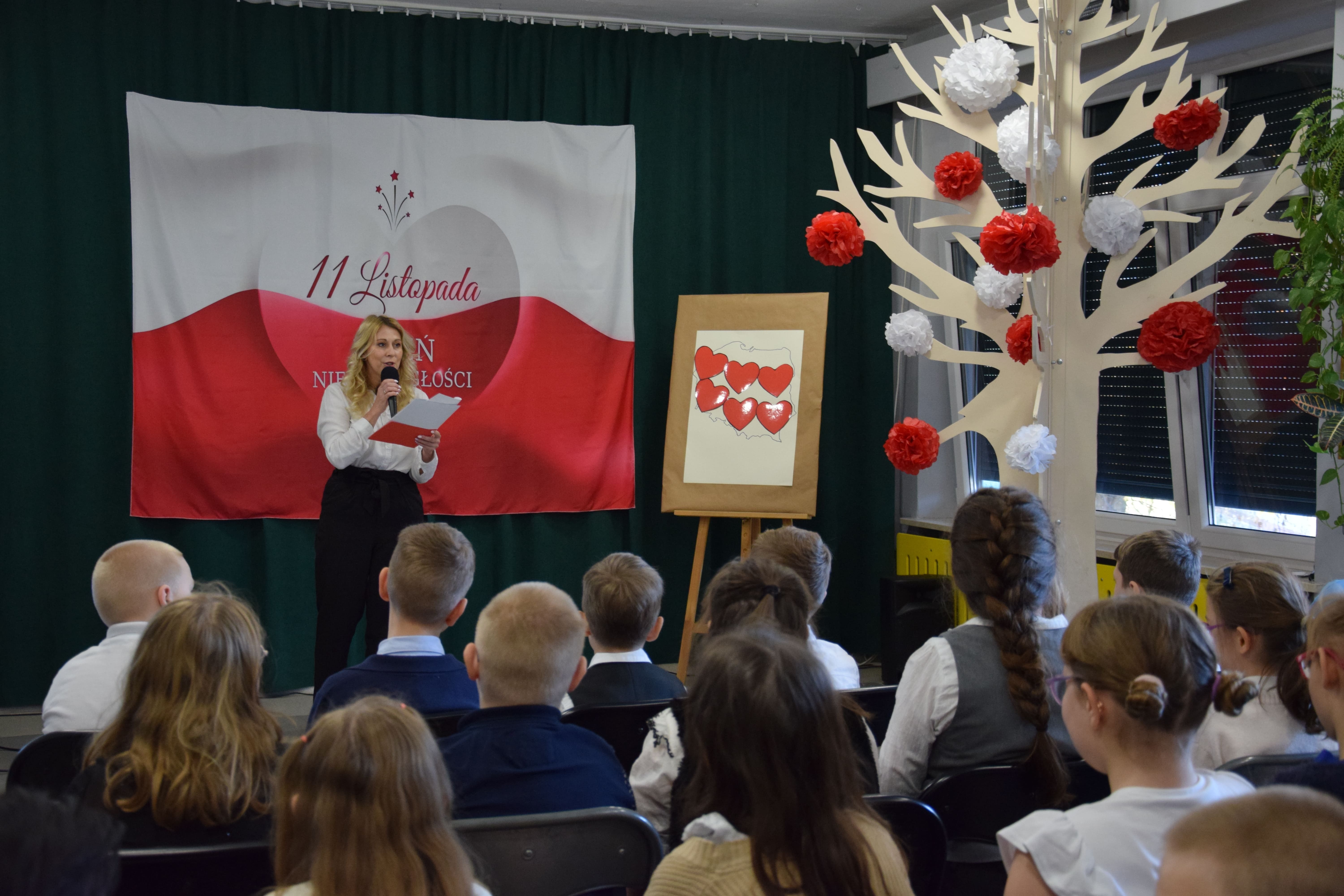 W naszej szkole, na kilka dni przed znaną wszystkim datą 11 listopada, odbył się uroczysty występ z okazji Narodowego Święta Niepodległości.