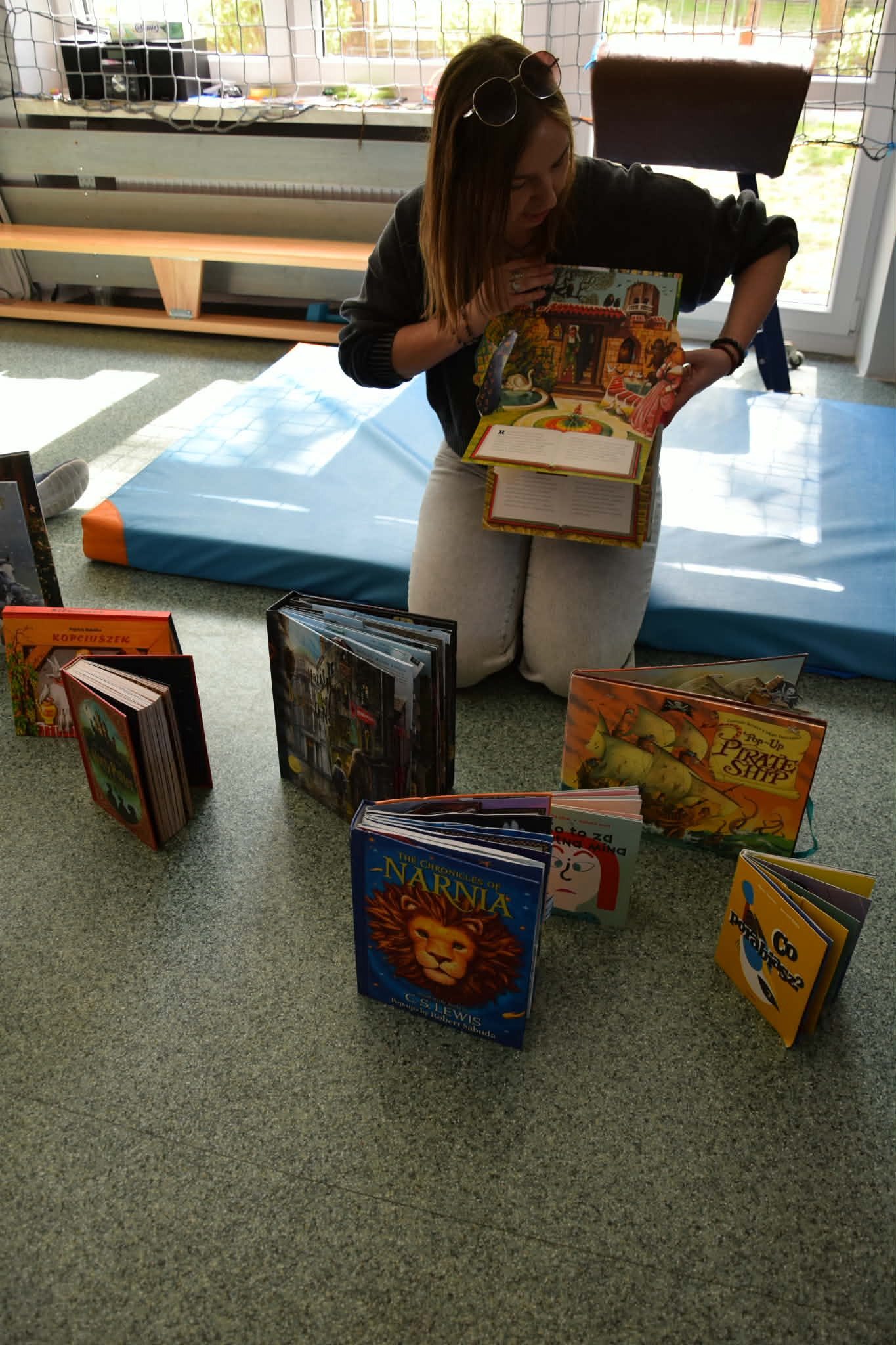 Na zakończenie Pani Kasi, odpowiedzialna w naszej szkole za rozwijanie świadomości czytelniczej, zaprezentowała swoją osobistą kolekcje książek pop-upowych. Rozkładanie, zaglądanie, otwieranie drzwi i okienek... Moglibyśmy tak bez końca!